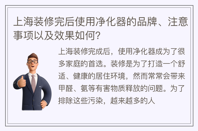 上海装修完后使用净化器的品牌、注意事项以及效果如何?