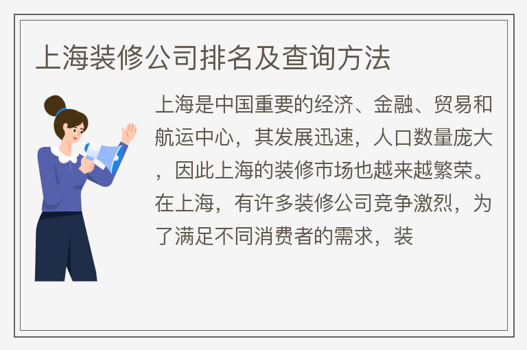 上海是中国重要的经济、金融、贸易和航运中心,其发展迅速,人口数量庞大,因此上海的装修市场也越来越繁荣。在上海,有许多装修公司竞争激烈,为了满足不同消费者的需求,装......【点击详情】