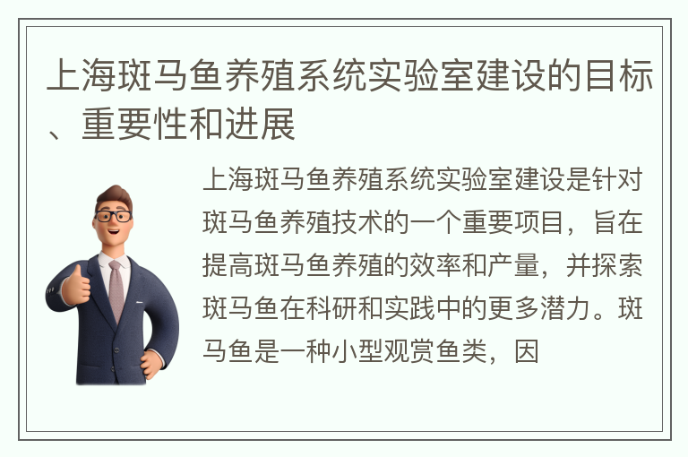 上海斑马鱼养殖系统实验室建设的目标、重要性和进展