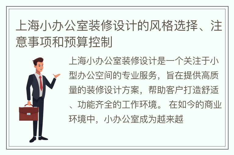上海小办公室装修设计的风格选择、注意事项和预算控制