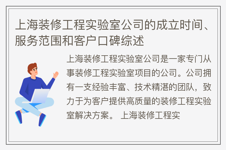 上海装修工程实验室公司的成立时间、服务范围和客户口碑综述