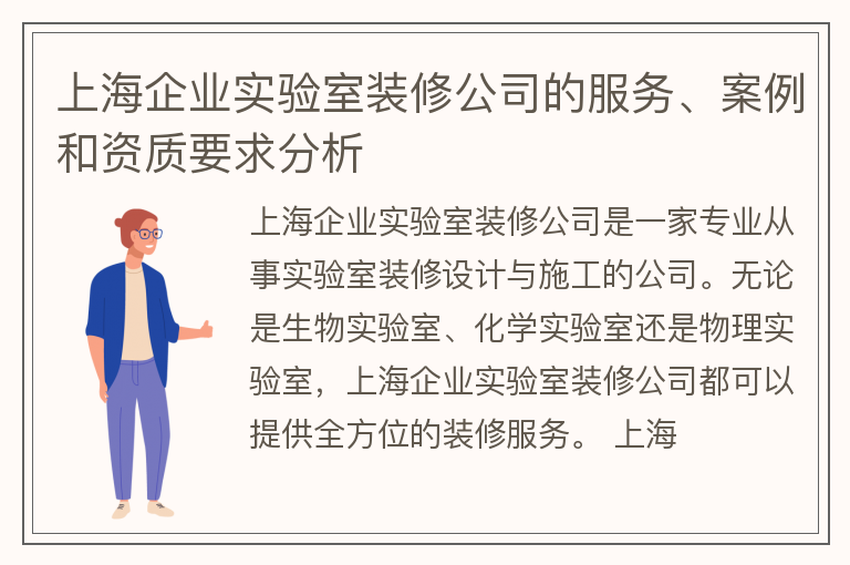 上海企业实验室装修公司的服务、案例和资质要求分析