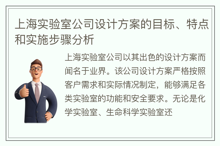 上海实验室公司设计方案的目标、特点和实施步骤分析