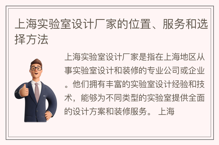 上海实验室设计厂家的位置、服务和选择方法