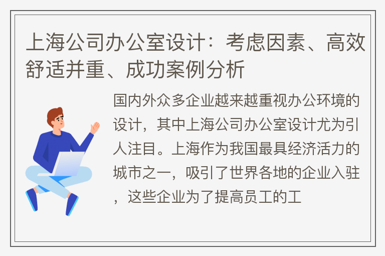 上海公司办公室设计:考虑因素、高效舒适并重、成功案例分析
