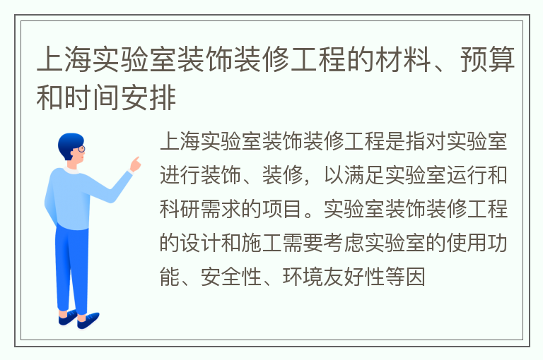 上海实验室装饰装修工程的材料、预算和时间安排