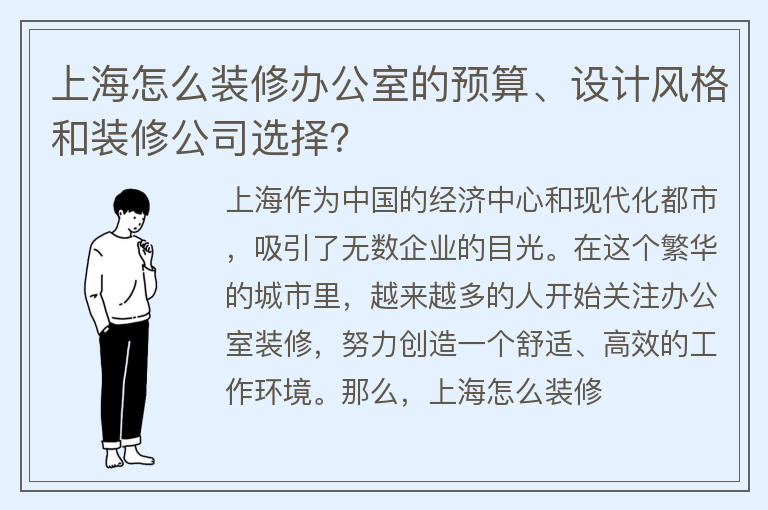 上海怎么装修办公室的预算、设计风格和装修公司选择?