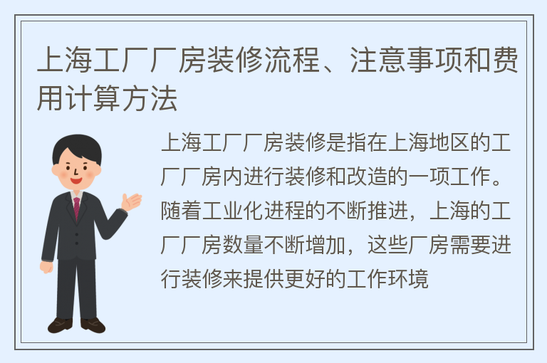 上海工厂厂房装修流程、注意事项和费用计算方法