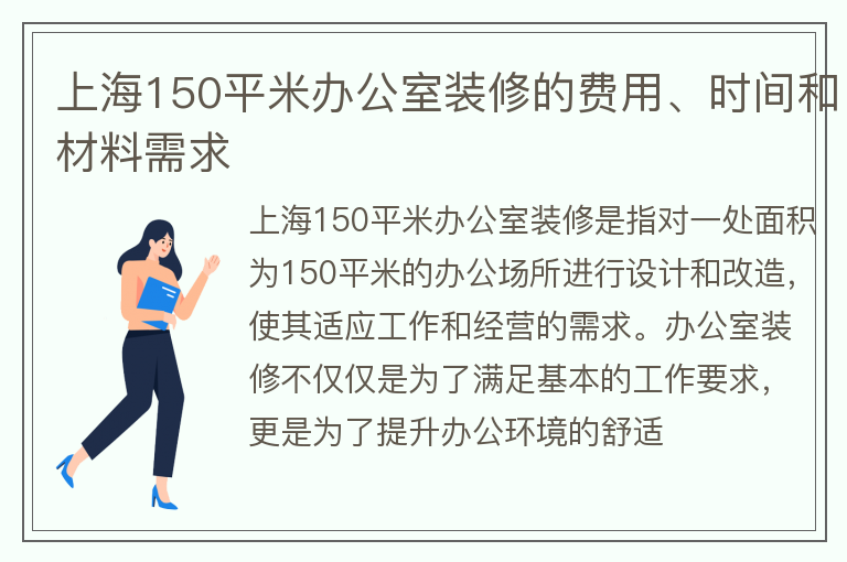 上海150平米办公室装修的费用、时间和材料需求