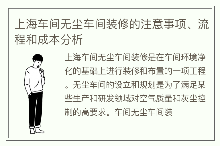 上海车间无尘车间装修的注意事项、流程和成本分析