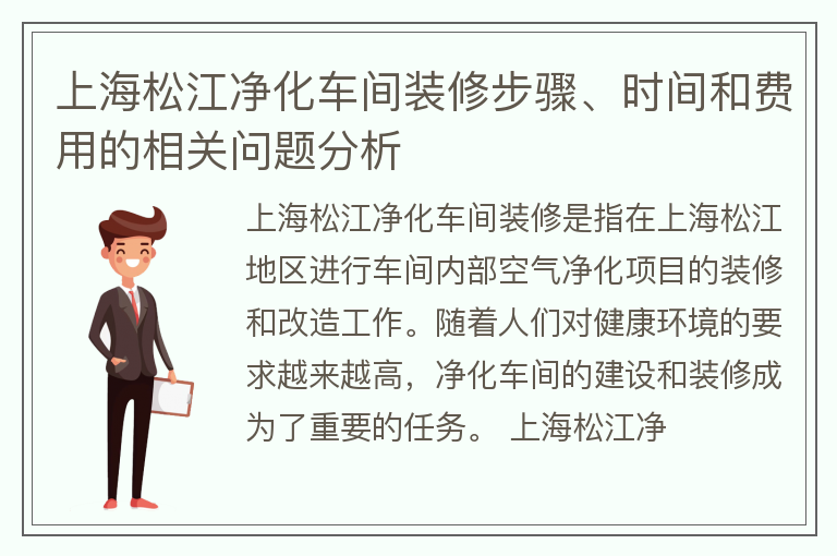 上海松江净化车间装修步骤、时间和费用的相关问题分析