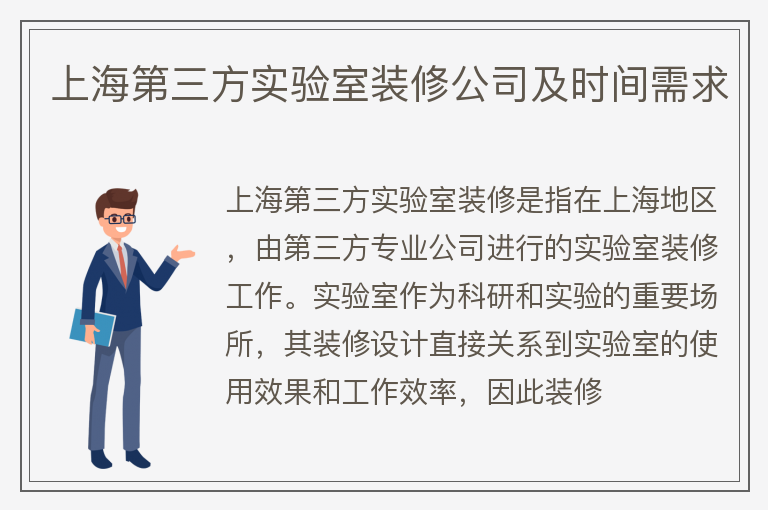 上海第三方实验室装修是指在上海地区,由第三方专业公司进行的实验室装修工作。实验室作为科研和实验的重要场所,其装修设计直接关系到实验室的使用效果和工作效率,因此装修......【点击详情】