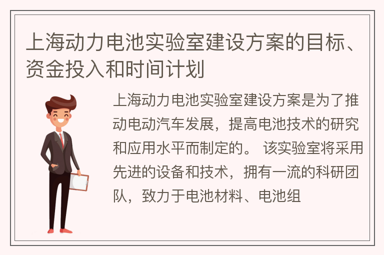 上海动力电池实验室建设方案的目标、资金投入和时间计划