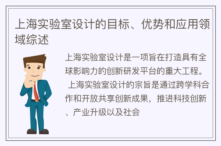 上海实验室设计的目标、优势和应用领域综述