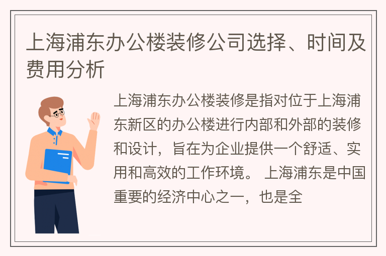 上海浦东办公楼装修公司选择、时间及费用分析