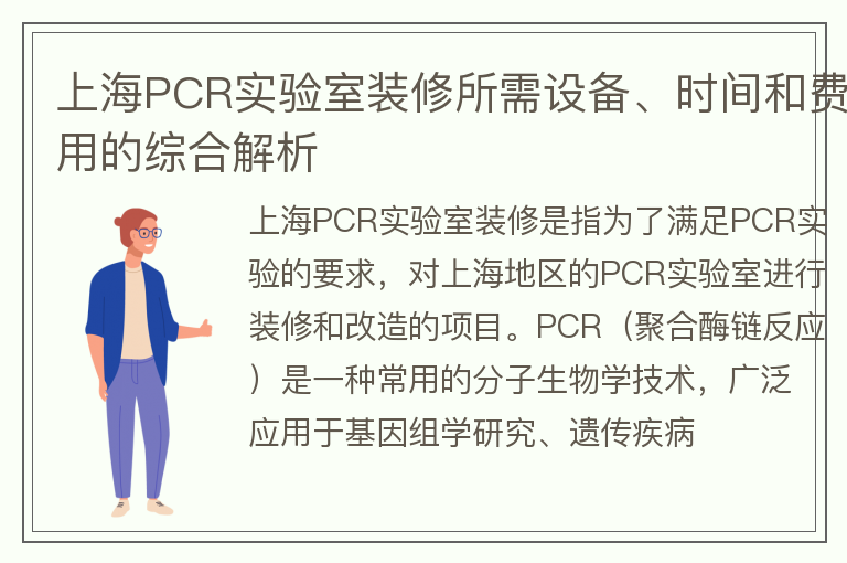 上海PCR实验室装修所需设备、时间和费用的综合解析