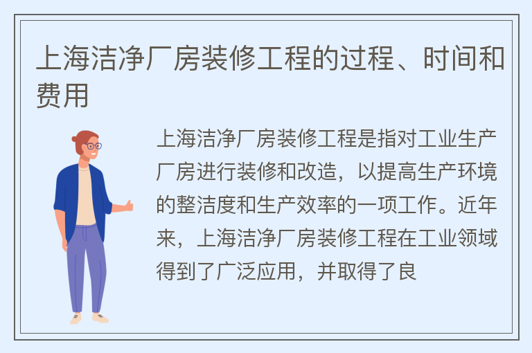 上海洁净厂房装修工程的过程、时间和费用