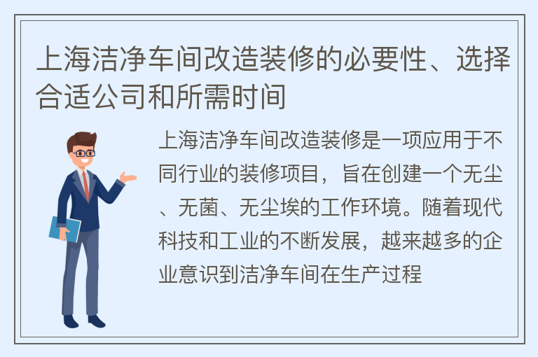 上海洁净车间改造装修的必要性、选择合适公司和所需时间