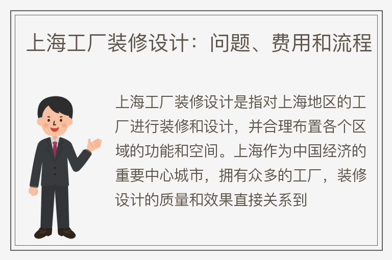 上海工厂装修设计:问题、费用和流程