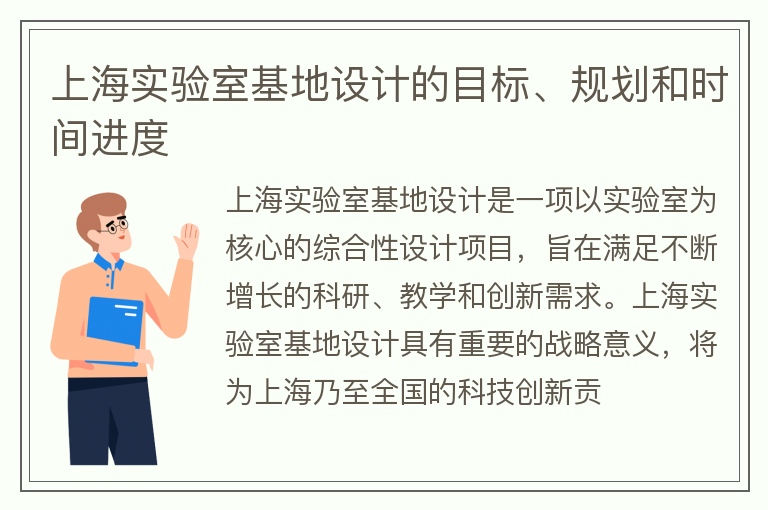 上海实验室基地设计是一项以实验室为核心的综合性设计项目,旨在满足不断增长的科研、教学和创新需求。上海实验室基地设计具有重要的战略意义,将为上海乃至全国的科技创新贡......【点击详情】
