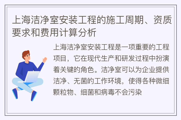 上海洁净室安装工程的施工周期、资质要求和费用计算分析