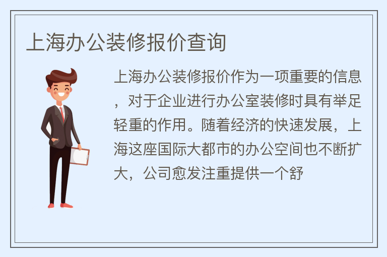 上海办公装修报价作为一项重要的信息,对于企业进行办公室装修时具有举足轻重的作用。随着经济的快速发展,上海这座国际大都市的办公空间也不断扩大,公司愈发注重提供一个舒......【点击详情】