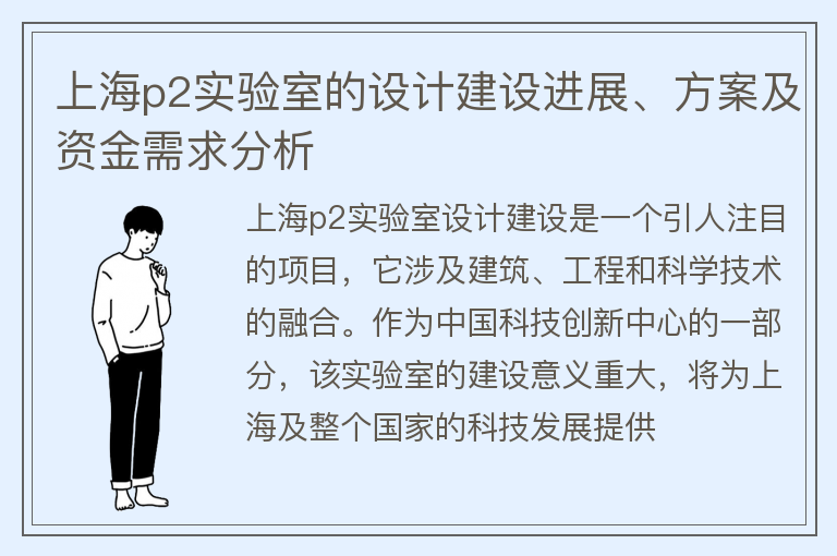 上海p2实验室的设计建设进展、方案及资金需求分析