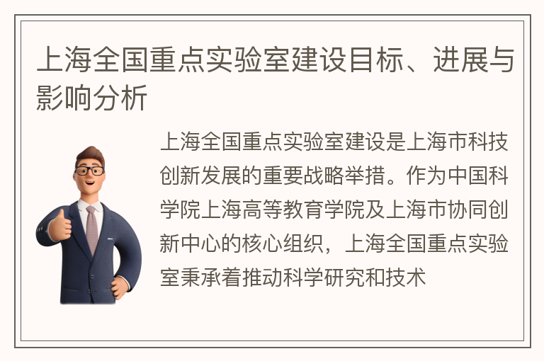 上海全国重点实验室建设是上海市科技创新发展的重要战略举措。作为中国科学院上海高等教育学院及上海市协同创新中心的核心组织,上海全国重点实验室秉承着推动科学研究和技术......【点击详情】