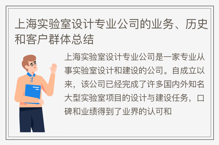 上海实验室设计专业公司的业务、历史和客户群体总结