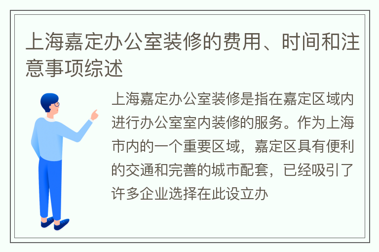 上海嘉定办公室装修的费用、时间和注意事项综述