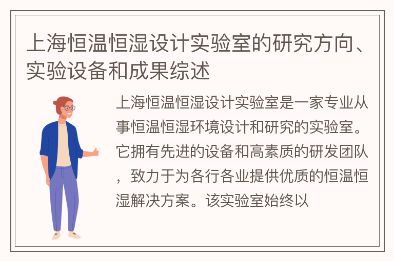 上海恒温恒湿设计实验室的研究方向、实验设备和成果综述