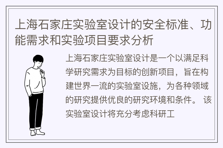 上海石家庄实验室设计的安全标准、功能需求和实验项目要求分析