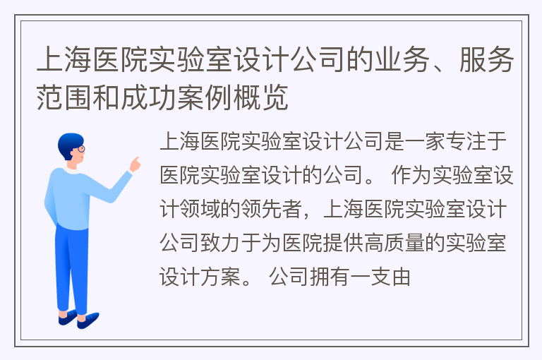 上海医院实验室设计公司的业务、服务范围和成功案例概览