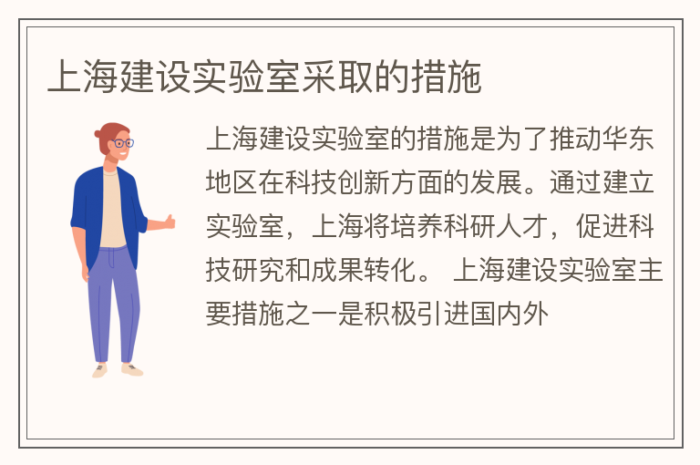 上海建设实验室的措施是为了推动华东地区在科技创新方面的发展。通过建立实验室,上海将培养科研人才,促进科技研究和成果转化。 上海建设实验室主要措施之一是积极引进国内外......【点击详情】
