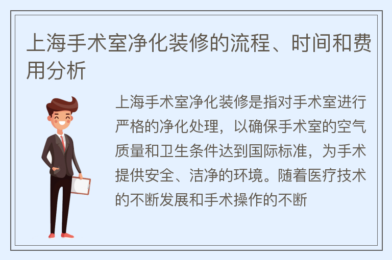 上海手术室净化装修是指对手术室进行严格的净化处理,以确保手术室的空气质量和卫生条件达到国际标准,为手术提供安全、洁净的环境。随着医疗技术的不断发展和手术操作的不断......【点击详情】