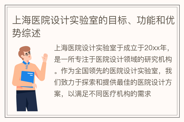 上海医院设计实验室的目标、功能和优势综述