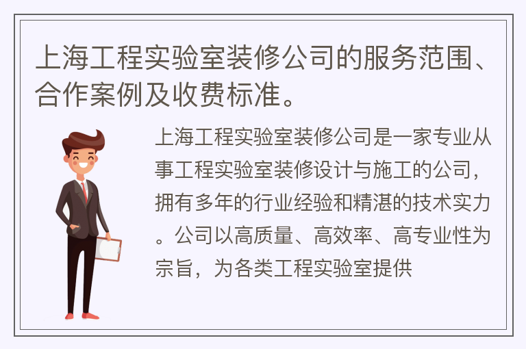 上海工程实验室装修公司的服务范围、合作案例及收费标准。