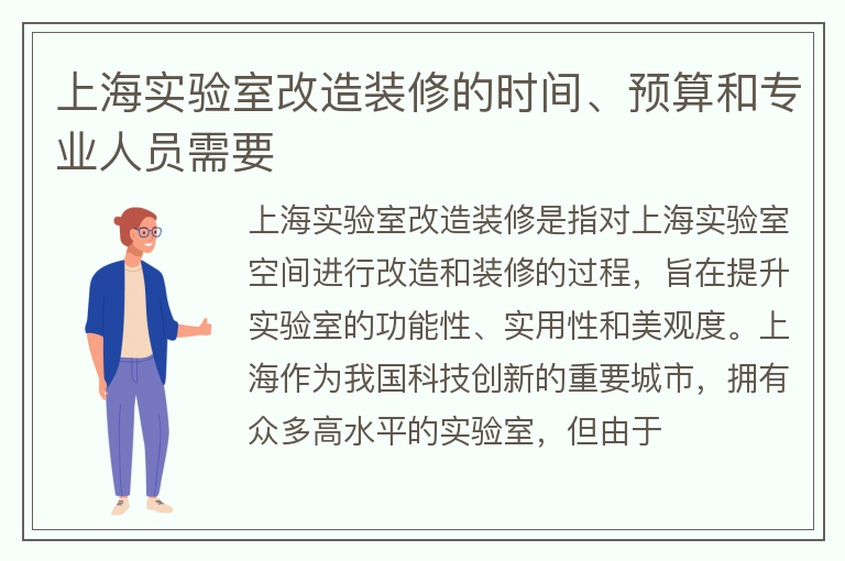 上海实验室改造装修的时间、预算和专业人员需要