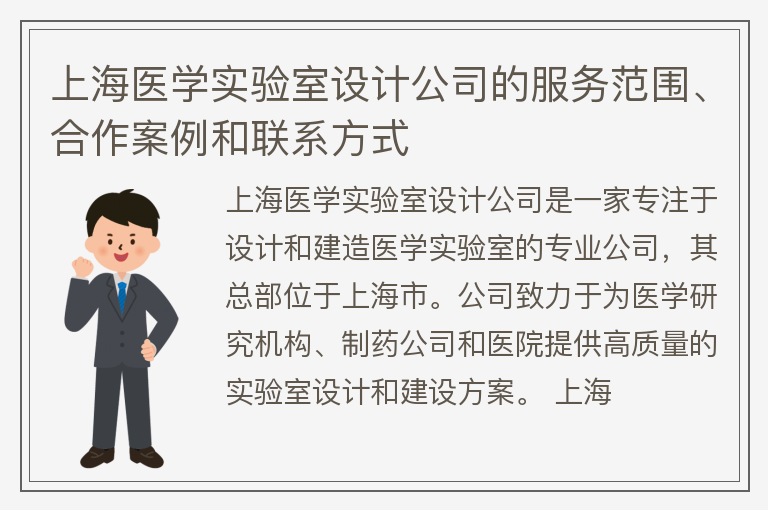 上海医学实验室设计公司的服务范围、合作案例和联系方式
