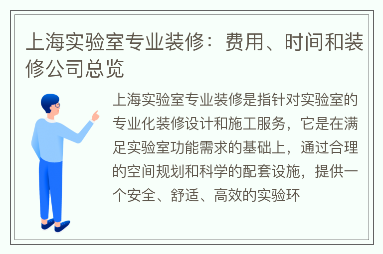 上海实验室专业装修:费用、时间和装修公司总览