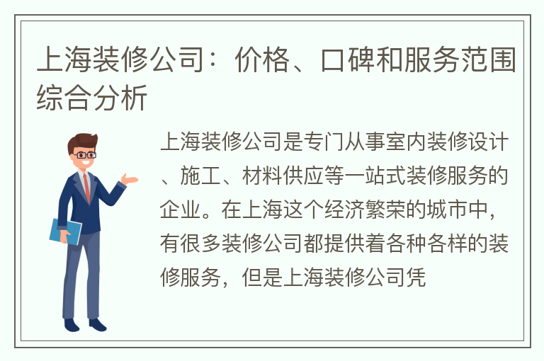 上海装修公司:价格、口碑和服务范围综合分析