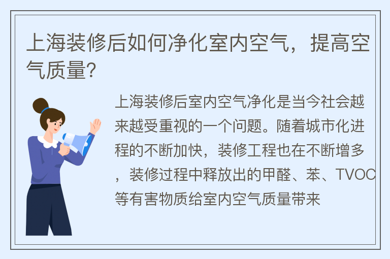 上海装修后如何净化室内空气,提高空气质量?