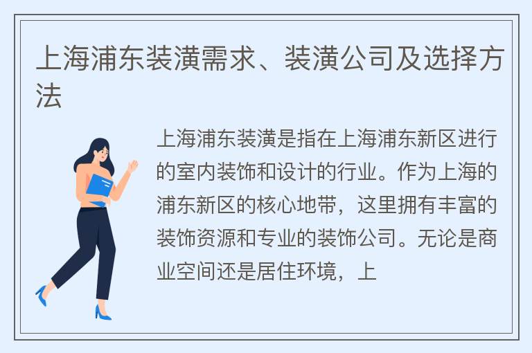 上海浦东装潢需求、装潢公司及选择方法