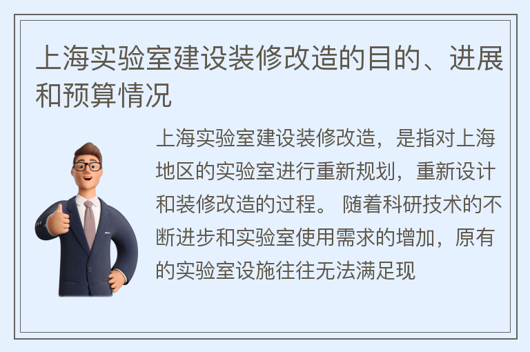 上海实验室建设装修改造的目的、进展和预算情况