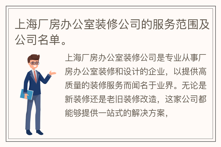 上海厂房办公室装修公司的服务范围及公司名单。