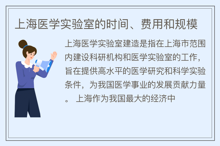 上海医学实验室的时间、费用和规模