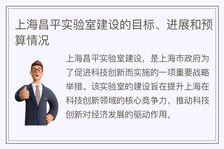上海昌平实验室建设的目标、进展和预算情况
