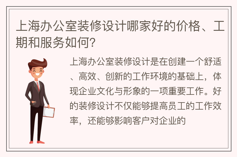 上海办公室装修设计哪家好的价格、工期和服务如何?