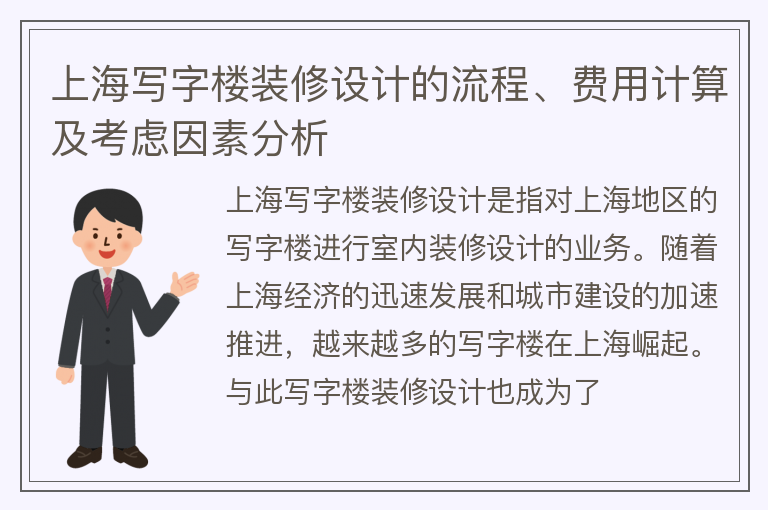 上海写字楼装修设计的流程、费用计算及考虑因素分析