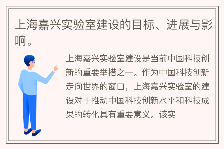 上海嘉兴实验室建设的目标、进展与影响。